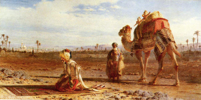 In 1858 Haag made his first visit to Egypt, where he joined forces with the English painter, Frederick Goodall. Both artists were captivated by the beauty of the landscape, and the exotic quality of Arab life.