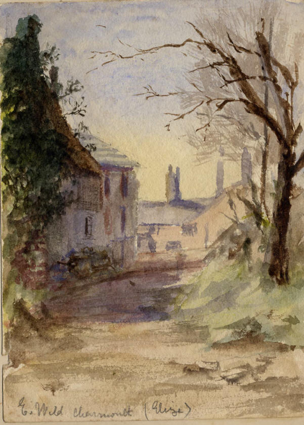 | Eliza Wild (Goodall) 1827-1916 ELIZA GOODALL was born 20 May 1827 in Middlesex, England and sister to Frederick Goodall. She died Abt. December 1916 in Sevenoaks, Kent, England. She married HENRY BOWLES WILD 08 July 1854 in St. Pancras Church, London, England, son of HENRY WILD and MARIA REEVES. She was a water colour artist who exhibited at the Royal Academy. |