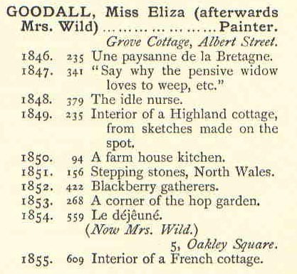 ![]() List of Royal Academy paintings by Eliza Wild Goodall.