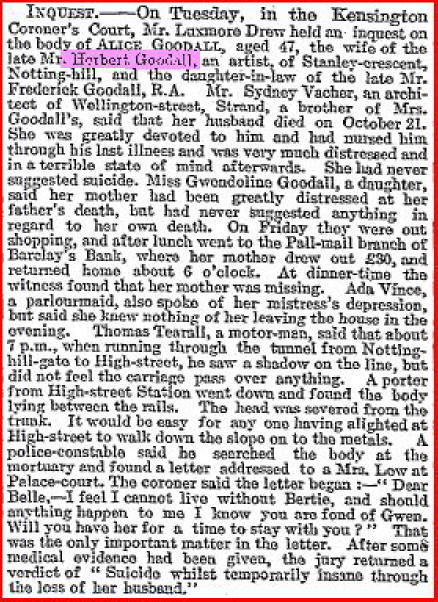 Shortly after his death, his wife Alice committed suicide. The following article is from the London Times dated 7th Nov 07