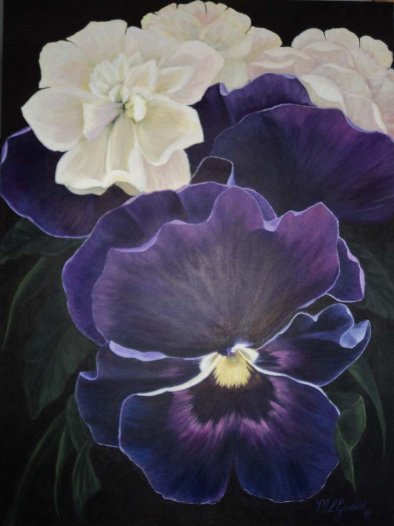 She put away her paints when she went to college in Red Deer, Alberta. Her ambition was to become an accountant. It was not until the early 1990’s that she started getting back into her painting. She would spend her summer holidays in Salmon Arm, British Columbia where her parents reside. Mary worked with a talented local artist and instructor Josephine (Jo) Parrott, a close and dear friend of the family. Jo taught her colour theory, painting techniques such as glazing which the masters used, composition, and drawing, which all brought inspiration seeing landscape, still life and floral in a new light and perspective. As well, Mary would take adhoc art courses at Mount Royal University in Calgary focusing on areas of drawing and painting. Currently Mary has taken a sabbatical from the corporate accounting world and has been totally absorbed in her art. She is working with artist and instructor Nancy Lynn Hughes. Nancy is also another inspiration in Mary’s work.
