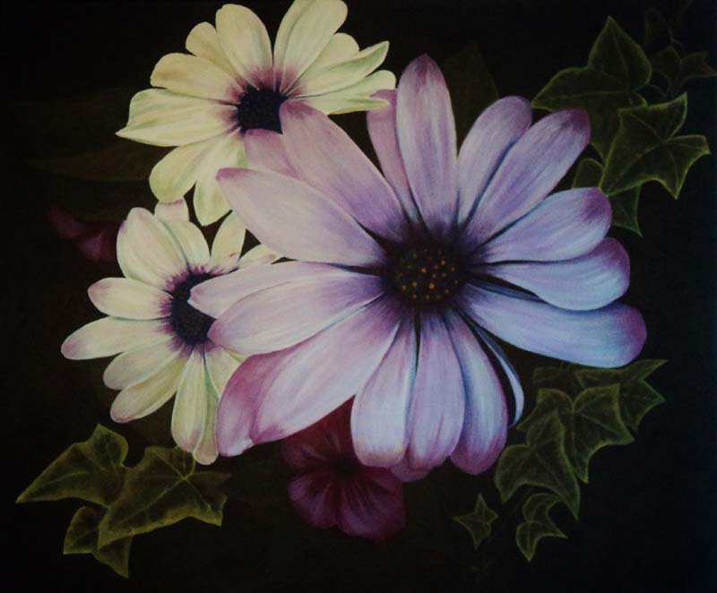that aspect into my paintings by merging the vibrant colours of my pallet to