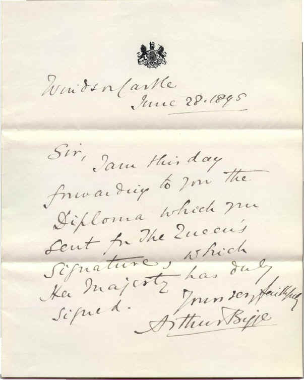 ![]() Letter dated 1895 to Edward A. Goodall from Queen Victoria's secretary, Windsor Castle. |