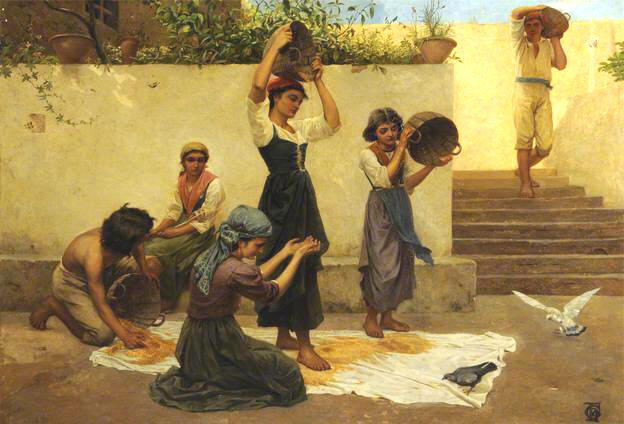 ![]() Girls Winnowing Corn at Capri. Exhibited at the Royal Academy in 1873 |